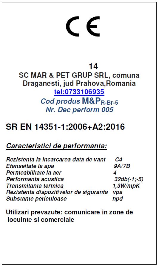 DECLARATIE DE PERFORMANTA - 004 - Brillant - Anvelopari (cu Reactie la Foc)